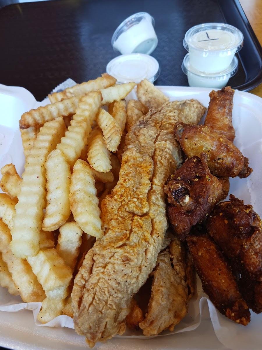 Fish and Chicken Wings with Fries